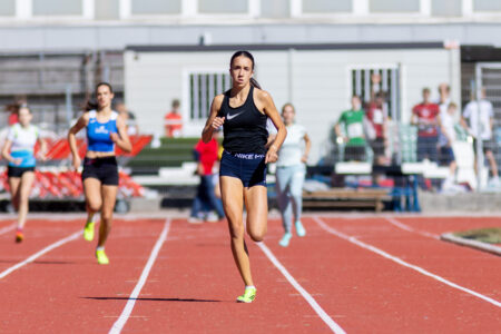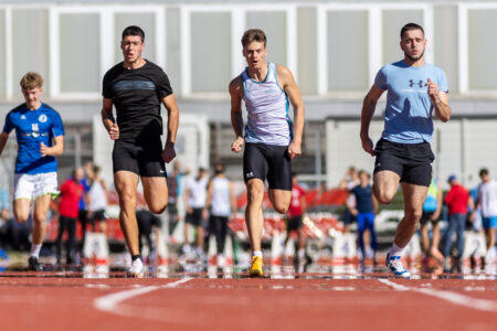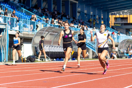 Neja Mantelj (druga z leve) je dobila sprinterski obračuna na 100 metrov. (Foto: Peter Kastelic / AZS)